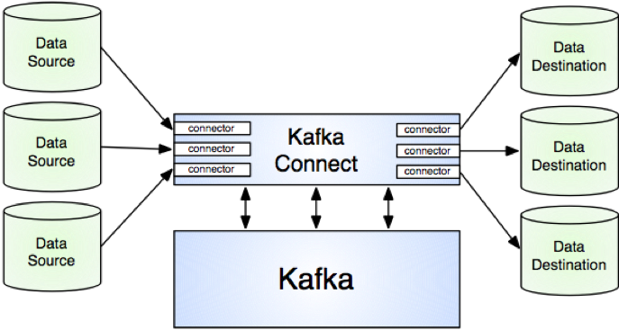 - 데이터 중심 파이프 라인 – Connect는 의미있는 데이터 추상화를 사용하여 데이터를 Kafka로 가져 오거나 푸시합니다.